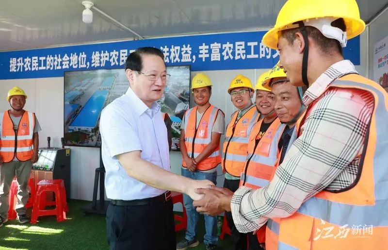 赤日炎炎,南昌洪騰高架項(xiàng)目現(xiàn)場一派繁忙,工程車來回進(jìn)行路面瀝青攤鋪,工人們正在揮汗如雨作業(yè)。易煉紅來到工地現(xiàn)場,向一線建設(shè)者們致以問候,感謝他們?yōu)槟喜鞘薪ㄔO(shè)作出的貢獻(xiàn)。他說,南昌是英雄城。大家來自全國各地,頂著烈日、不懼“烤”驗(yàn),揮灑的每一滴汗水、付出的每一份辛勤都是在為英雄城南昌的建設(shè)發(fā)展添油助力,你們是光榮的勞動(dòng)者,也是在高溫下戰(zhàn)斗的“英雄”。易煉紅反復(fù)叮囑大家要保重身體,采取有效措施防暑降溫,注意自我防護(hù)、勞逸結(jié)合,以健康的身體投入緊張的工作。在現(xiàn)場,易煉紅還聽取了項(xiàng)目有關(guān)情況介紹,要求在確保質(zhì)量和安全的前提下,加快推進(jìn)項(xiàng)目建設(shè),確保早日建成通車。