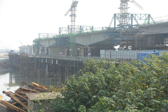 南環(huán)高架橋撫河段懸灌梁的順利合攏,標(biāo)志著項目上部梁體施工取得階段性勝利,現(xiàn)場施工正如火如荼展開。